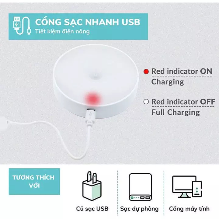 Đèn Led cảm ứng chuyển động thông minh tự Bật Tắt dán tường, đèn cảm biến gắn cầu thang, giường tủ sạc pin tích điện